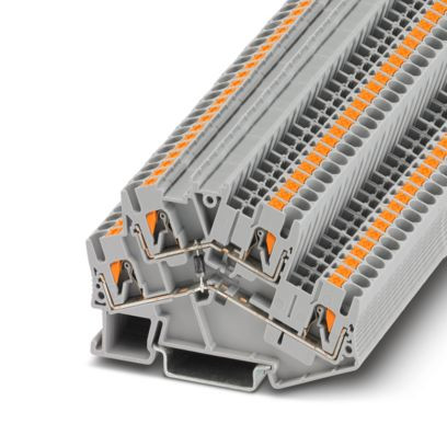Bauelementreihenklemme, mit integrierter Diode 1N4007, Schaltsymbol im eingebauten Zustand erkennbar, Nennstrom: 0,5 A, Anzahl der Anschlüsse: 4, Anschlussart: Push-in-Anschluss, Bemessungsquerschnitt: 2,5 mm², 1. und 2. Etage, Querschnitt: 0,14 mm² - 4 mm², Montageart: NS 35/7,5, NS 35/15, Farbe: grau