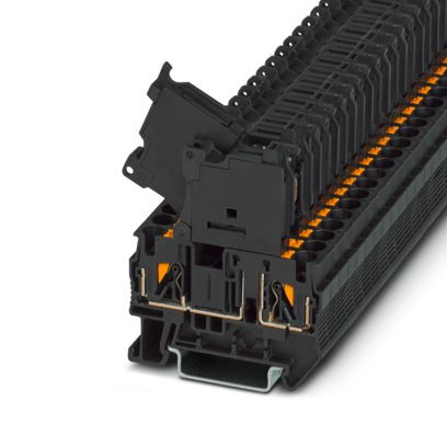 Bauelementreihenklemme, Nennspannung: 250 V, Nennstrom: 6,3 A, Anschlussart: Push-in-Anschluss, Bemessungsquerschnitt: 4 mm², Querschnitt: 0,2 mm² - 6 mm², Montage: NS 35/7,5, NS 35/15, Farbe: schwarz