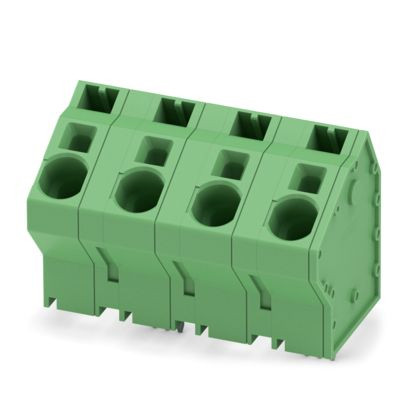 Leiterplattenklemme, Nennstrom: 76 A, Bemessungsspannung (III/2): 1000 V, Nennquerschnitt: 16 mm², Anzahl der Potenziale: 4, Anzahl der Reihen: 1, Polzahl pro Reihe: 4, Artikelfamilie: SPTA 16/, Rastermaß: 15 mm, Anschlussart: Push-in-Federanschluss, Montage: Wellenlöten, Anschlussrichtung Leiter/Platine: 60 °, Farbe: grün, Pin-Layout: Zick-Zack-Pinning W, Pinlänge [P]: 4,1 mm, Anzahl der Lötpins pro Potenzial: 3, Verpackungsart: verpackt im Karton