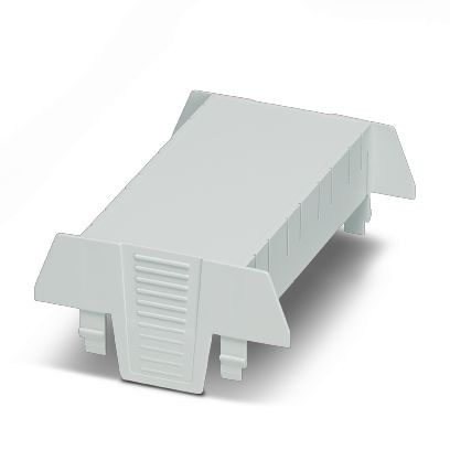 Tragschienengehäuse, Gehäuseoberteil, hohe Bauform, beidseitige Anschlussöffnung, beidseitige Anschlussöffnung, Breite: 90,1 mm, Höhe: 75,27 mm, Tiefe: 36,95 mm, Farbe: lichtgrau (ähnlich RAL 7035)
