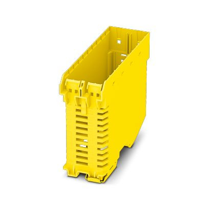 Tragschienengehäuse, Gehäuseunterteil mit Metallfußriegel, mit Lüftungsschlitzen, Breite: 37,89 mm, Höhe: 120,6 mm, Tiefe: 82,85 mm, Farbe: gelb (ähnlich RAL 1018), Querverbindung: Tragschienen-Busverbinder (optional), Polzahl Querverbinder: 5 oder 8