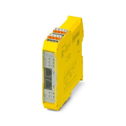 Sicheres Erweiterungsmodul zur Überwachung von Stillstand, Drehzahl, Drehrichtung, Überwachung von 2 Achsen, NPN/PNP-Näherungsschalter, 2 x HTL-Encoder, TBUS-Schnittstelle, bis SIL 3, Cat. 4/PL e, steckbare Push-in-Klemme, TBUS-Verbinder liegt bei