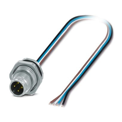 Gerätesteckverbinder Hinterwand, Universal, 4-polig, Stift, gerade, M12-Push-Pull-Außenverriegelung, A-Kodierung, auf freies Leitungsende, Einzellitzen, Kabellänge: 0,5 m, 0,34 mm², TPE-Litze, vergossen, Artikel ist bleifrei nach RoHS II ohne Ausnahme 6c (Pb < 0,1 %)