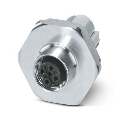 Wanddurchführung, Universal, 5-polig, ungeschirmt, Buchse gerade M12, Kodierung: A, Vorderwandmontage, M20 x 1,5, Push-Lock-Federanschluss, Rändelmaterial: Messing, vernickelt, Flachmutter beiliegend