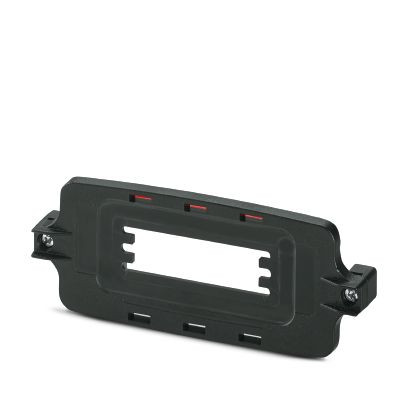 Frontplatte der ECS-Familie, bereit für die Integration eines modularen, rechteckigen Variocon VC3-Steckverbinders, Schraubverriegelung, Schutzart: IP66/IP67/IP68/IP69 bei Kombination mit ECS-Gehäuse, Farbe: schwarz (RAL 9005), Breite: 163 mm, Höhe: 30 mm, Tiefe: 62 mm