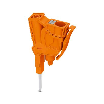 Abgriffklemme, Nennspannung: 1000 V, Nennstrom: 32 A, Anzahl der Anschlüsse: 2, Anschlussart: Push-in-Anschluss, Bemessungsquerschnitt: 6 mm², 1. Etage, Querschnitt: 0,5 mm² - 10 mm², Montageart: Steckmontage, Farbe: orange