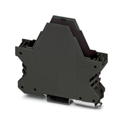 Tragschienengehäuse, Gehäuseunterteil mit Metallfußriegel und FE-Kontakt, flache Bauform, mit Lüftungsschlitzen, Breite: 22,6 mm, Höhe: 99 mm, Tiefe: 84,8 mm, Farbe: schwarz (ähnlich RAL 9005), Querverbindung: ohne Busverbinder, Polzahl Querverbinder: nicht relevant