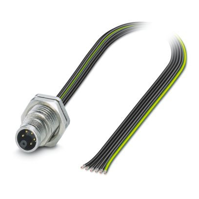 Gerätesteckverbinder Hinterwand, Leistung, 6-polig, Stift, gerade, M12-Standard, M-Kodierung, auf freies Leitungsende, Einzellitzen, Kabellänge: 1,5 m, 1,31 mm², UL/cUL Schaltlitze, vergossen, dieser Artikel ist voraussichtlich ab 2026-Q1 nach RoHS II ohne Ausnahme 6c (Pb < 0,1 %) bleifrei, auf Anfrage ist eine bleifreie Alternative vorab möglich