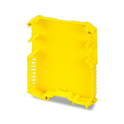 Tragschienengehäuse, Gehäusehalbschale (rechts), hohe Bauform, mit Lüftungsschlitzen, Breite: 16,3 mm, Höhe: 99 mm, Tiefe: 112,85 mm, Farbe: gelb (ähnlich RAL 1018)