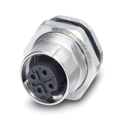 Gerätesteckverbinder Hinterwand, 4-polig, Buchse, gerade, M12-SPEEDCON, D-Kodierung, Wellenlöten, Artikel ist bleifrei nach RoHS II ohne Ausnahme 6c (Pb < 0,1 %)