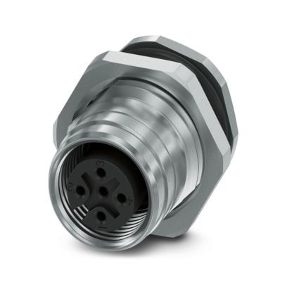 Gerätesteckverbinder Hinterwand, 5-polig, Buchse, gerade, M12-Push-Pull-Außenverriegelung, A-Kodierung, Wellenlöten, Artikel ist bleifrei nach RoHS II ohne Ausnahme 6c (Pb < 0,1 %)