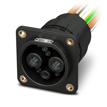 CHARX connect universal, DC GB/T, Fahrzeug-Ladedose, bis zu 250 A im Boost Mode, 125 A dauerhaft, 1000 V DC, Einzeladern, Länge: 2 m, Vorder- und Rückwandmontage, M6, Gehäuse: schwarz, zum Laden mit Gleichstrom (DC), GB/T 20234.3-2015, Für die DC-Kontakte ist eine Schutzkappe im Lieferumfang enthalten.