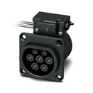 CHARX connect modular, Typ 2, Infrastruktur-Ladedose, 32 A , 480 V AC, Basic, ohne Einzeladern, Verriegelungsaktuator: 12 V, 4-polig, eckig, Rückwandmontage, inkl. M5-Gewindehülsen (4x) für „Easy Mount“-Montage, Gehäuse: schwarz, zum Laden mit Wechselstrom (AC) von Elektrofahrzeugen (EV), PHOENIX CONTACT-Logo, IEC 62196-2