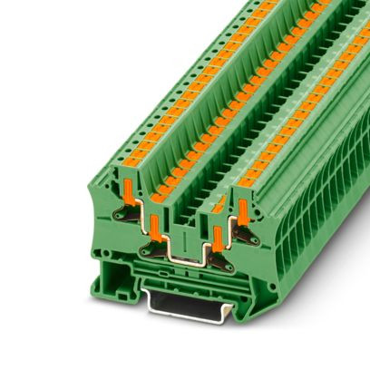 Durchgangsklemme, Nennspannung: 1000 V, Nennstrom: 32 A, Anzahl der Anschlüsse: 4, Anschlussart: Push-in-Anschluss, Bemessungsquerschnitt: 4 mm², Querschnitt: 0,2 mm² - 6 mm², Montageart: NS 35/7,5, NS 35/15, Farbe: grün