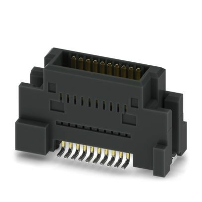 SMD-Messerleiste, Nennstrom: 0,5 A, Prüfspannung: 500 V AC, Polzahl: 20, Rastermaß: 0,635 mm, Farbe: schwarz, Kontaktoberfläche: Au, Kontaktart: Stift, Montage: SMD-Löten