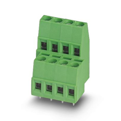 Leiterplattenklemme, Nennstrom: 17,5 A, Bemessungsspannung (III/2): 400 V, Nennquerschnitt: 1,5 mm², Anzahl der Reihen: 2, Polzahl pro Reihe: 4, Artikelfamilie: MKKDS 1,5, Rastermaß: 5 mm, Anschlussart: Schraubanschluss mit Zughülse, Schraubenangriffsform: L Längsschlitz, Montage: Wellenlöten, Anschlussrichtung Leiter/Platine: 0 °, Farbe: grün, Pin-Layout: Lineares Pinning, Pinlänge [P]: 3,5 mm, Anzahl der Lötpins pro Potenzial: 1, Verpackungsart: verpackt im Karton