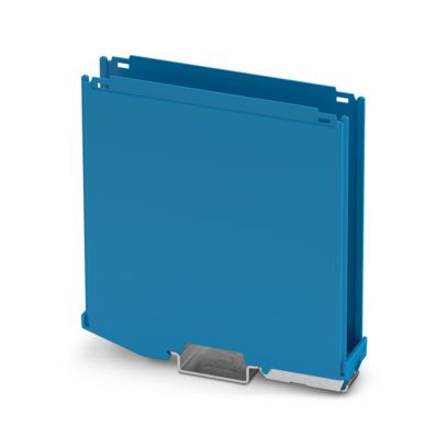 Tragschienengehäuse, Gehäuseunterteil mit Metallfußriegel, Breite: 20 mm, Höhe: 100 mm, Tiefe: 108,35 mm, Farbe: blau (ähnlich RAL 5015), Querverbindung: Tragschienen-Busverbinder (optional), Polzahl Querverbinder: 8
