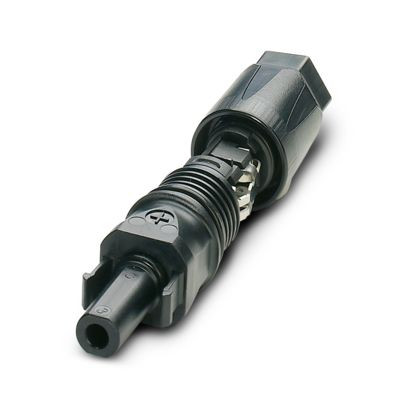 Photovoltaik-Steckverbinder, Artikelfamilie: SUNCLIX, Farbe: schwarz, Polzahl: 1, Aderquerschnitt min.: 2,5 mm², Aderquerschnitt max.: 6 mm², Bemessungsspannung: 1100 V DC, Bemessungsstrom: 35 A, Anschlussart: Federkraft, Kabeldurchmesser min.: 5,5 mm, Kabeldurchmesser max.: 8 mm, Nachfolgeartikel von 1774674
