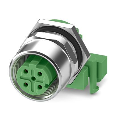 Gerätesteckverbinder Hinterwand, 4-polig, Buchse, gewinkelt, M12, D-Kodierung, Wellenlöten