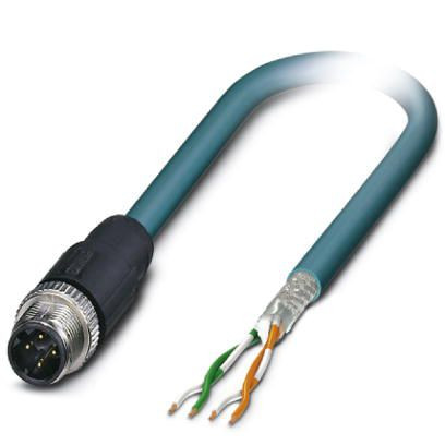 Netzwerkkabel, Ethernet CAT5 (100 MBit/s), 4-polig, PUR halogenfrei, wasserblau RAL 5021, geschirmt, Stecker gerade M12 / IP67, Kodierung: D, auf freies Leitungsende, Kabellänge: 10 m