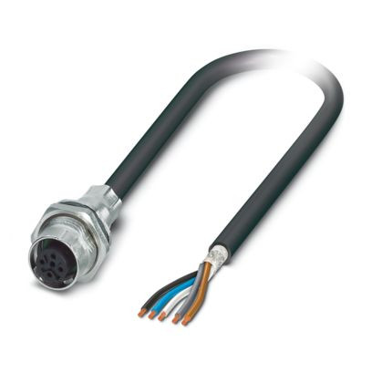 Gerätesteckverbinder Hinterwand, Universal, 5-polig, PUR halogenfrei, schwarzgrau RAL 7021, geschirmt, Buchse, gerade, M12-SPEEDCON, A-Kodierung, auf freies Leitungsende, Kabelanschluss, Kabellänge: 2 m, 0,34 mm², PUR halogenfrei schwarz, dieser Artikel ist voraussichtlich ab 2026-Q2 nach RoHS II ohne Ausnahme 6c (Pb < 0,1 %) bleifrei, auf Anfrage ist eine bleifreie Alternative vorab möglich