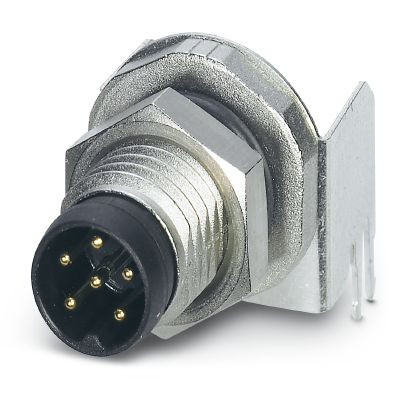 Gerätesteckverbinder Hinterwand, 6-polig, Stift, gewinkelt, M8, A-Kodierung, Wellenlöten