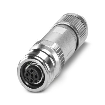 Steckverbinder, Universal, 5-polig, geschirmt, Buchse gerade M12 Push-Pull, Kodierung: A, Push-Lock-Federanschluss, Rändelmaterial: Zinkdruckguss, vernickelt, Leitungsaußendurchmesser 4 mm ... 8 mm