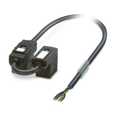 Doppelventilstecker-Kabel, 4-polig, PUR/PVC, schwarz, freies Leitungsende, auf Ventilstecker B (10 mm), mit 1 LED, beschaltet mit Z-Diode und Ventilstecker B (10 mm), mit 1 LED, beschaltet mit Z-Diode, Kabellänge: 1,5 m, Ventilsteckerabstand: 0,15 m