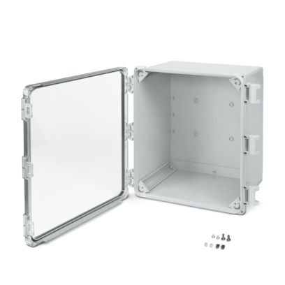 Outdoor-Gehäuse, Komplettgehäuse mit transparentem Deckel inkl. Befestigungsmaterial, Farbe: lichtgrau (ähnlich RAL 7035), Schutzart: IP69, Abmessungen: 463 x 482 x 286 mm