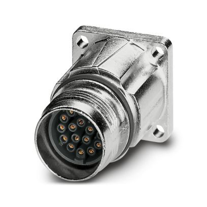 Gerätesteckverbinder Vorderwand, gerade, für Standard- und SPEEDCON-Verriegelung, M17, Polzahl: 17, Kontaktart: Buchse, geschirmt: ja, Flanschmaß: 21,6 mm x 21,6 mm, Polzahl: 17, Anschlussart: Crimpanschluss, Serie: ST, Dieses Produkt befindet sich in einem Abkündigungsprozess. Für neue Projekte darf dieses Produkt nicht mehr berücksichtigt werden. Bitte wenden Sie sich für Alternativen an Ihren zuständigen Vertriebsmitarbeiter.