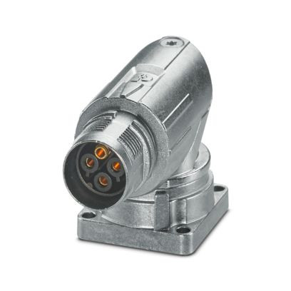 M17, Gerätesteckverbinder Vorderwand, Serie: M17 PRO, gewinkelt drehbar, geschirmt: ja, für Standard- und ONECLICK-Schnellverriegelung, Polzahl: 3+PE, Kontaktart: Buchse, Crimpanschluss, Flanschmaß: 28 mm x 28 mm, Artikel ist bleifrei nach RoHS II ohne Ausnahme 6c (Pb < 0,1 %)