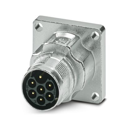 M17, Gerätesteckverbinder Vorderwand, Serie: M17 PRO, gerade, geschirmt: ja, für Standard- und ONECLICK-Schnellverriegelung, Polzahl: 6+PE, Kontaktart: Stift, Crimpanschluss, Flanschmaß: 28 mm x 28 mm, Artikel ist bleifrei nach RoHS II ohne Ausnahme 6c (Pb < 0,1 %)