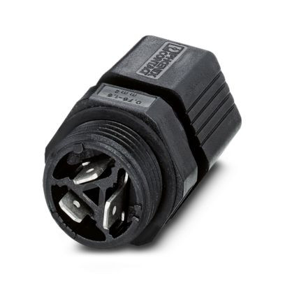 Wanddurchführung, Anschlussart: Handlöt-/Flachsteckanschluss (4,8 mm x 0,8 mm)/ IDC-Anschluss, M20, Stift, 0,75 mm² ... 1,5 mm², 500 V, 17,5 A, PA, schwarz, mit QUICKON-Mutter, Leitungsaußendurchmesser: 6 mm ... 12 mm, 1,5 mm²
