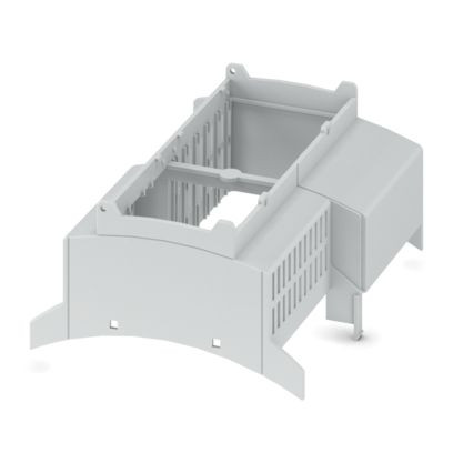 Tragschienengehäuse für den Einsatz in Installationsverteilern nach DIN 43880, modulares Gehäuseoberteil, Breite: 107,6 mm, Höhe: 89,7 mm, Tiefe: 54,85 mm, Farbe: lichtgrau (ähnlich RAL 7035)