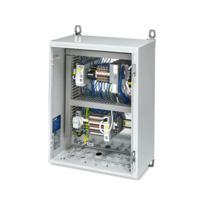 EZA-Schaltschrank mit zertifiziertem EZA-Regler nach VDE-AR-N 4110/4120/4130 ohne USV und ohne Messgerät. Router nachrüstbar. Vorbereitet für eine kundenspezifische EZA-Regler-Applikation mit einer Fernwirkanbindung über digitale Eingangssignale.