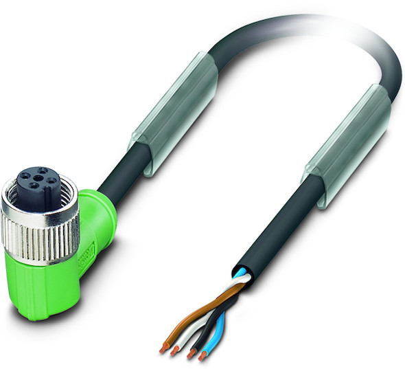 Sensor-/Aktor-Kabel, 4-polig, PUR halogenfrei, schwarzgrau RAL 7021, freies Leitungsende, auf Buchse gewinkelt M12, Kodierung: A, Kabellänge: 10 m
