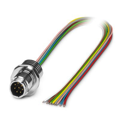 Gerätesteckverbinder Vorderwand, Universal, 8-polig, Stift, gerade, M12-Push-Pull-Außenverriegelung, A-Kodierung, auf freies Leitungsende, Einzellitzen, Kabellänge: 0,5 m, 0,25 mm², TPE-Litze, vergossen, Artikel ist bleifrei nach RoHS II ohne Ausnahme 6c (Pb < 0,1 %)