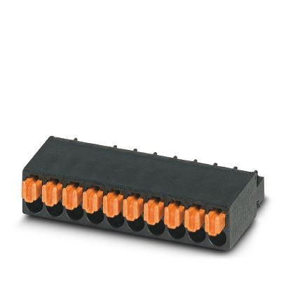 Leiterplattenstecker, Nennquerschnitt: 0,5 mm², Farbe: schwarz, Nennstrom: 6 A, Bemessungsspannung (III/2): 160 V, Kontaktoberfläche: Gold, Kontaktart: Buchse (female), Anzahl der Potenziale: 14, Anzahl der Reihen: 1, Polzahl: 14, Anzahl der Anschlüsse: 14, Artikelfamilie: FMC 0,5/..-ST, Rastermaß: 2,54 mm, Anschlussart: Push-in-Federanschluss, Anschlussrichtung Leiter/Platine: 0 °, Anzahl der Lötpins pro Potenzial: 1, Stecksystem: COMBICON FMC 0,5, Verriegelung: ohne, Befestigungsart: ohne, Verpackungsart: verpackt im Karton, Feste Kodierung des ersten Pols, Kombinierbar mit den Grundgehäusen MC(V) 0,5/...-G-2,54...C1
