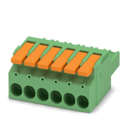 Leiterplattenstecker, Nennquerschnitt: 6 mm², Farbe: grün, Nennstrom: 41 A, Bemessungsspannung (III/2): 1000 V, Kontaktoberfläche: Sn, Kontaktart: Buchse, Anzahl der Potenziale: 6, Anzahl der Reihen: 1, Polzahl: 6, Anzahl der Anschlüsse: 6, Artikelfamilie: LPC 6/..-ST, Rastermaß: 7,62 mm, Anschlussart: Hebel-Push-in-Anschluss, Anschlussrichtung Leiter/Platine: 0 °, Rasthaken: - ohne Rasthaken, Stecksystem: COMBICON PC 6, Verriegelung: ohne, Befestigungsart: ohne, Verpackungsart: verpackt im Karton