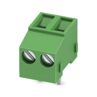 Leiterplattenklemme, Nennstrom: 17,5 A, Bemessungsspannung (III/2): 400 V, Nennquerschnitt: 1,5 mm², Anzahl der Potenziale: 2, Anzahl der Reihen: 1, Polzahl pro Reihe: 2, Artikelfamilie: MKDSFW 1,5, Rastermaß: 5 mm, Anschlussart: Schraubanschluss mit Zughülse, Schraubenangriffsform: L Längsschlitz, Montage: Wellenlöten, Anschlussrichtung Leiter/Platine: 90 °, Farbe: grün, Pin-Layout: Lineares Pinning, Pinlänge [P]: 5 mm, Anzahl der Lötpins pro Potenzial: 1, Verpackungsart: verpackt im Karton. Der Artikel ist zu unterschiedlichen Polzahlen anreihbar!