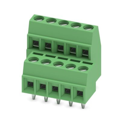 Leiterplattenklemme, Nennstrom: 8 A, Bemessungsspannung (III/2): 200 V, Nennquerschnitt: 1 mm², Anzahl der Potenziale: 10, Anzahl der Reihen: 2, Polzahl pro Reihe: 5, Artikelfamilie: MKKDS 1, Rastermaß: 3,5 mm, Anschlussart: Schraubanschluss mit Zughülse, Schraubenangriffsform: L Längsschlitz, Montage: Wellenlöten, Anschlussrichtung Leiter/Platine: 0 °, Farbe: grün, Pin-Layout: Lineares Pinning, Pinlänge [P]: 3,5 mm, Anzahl der Lötpins pro Potenzial: 1, Verpackungsart: verpackt im Karton