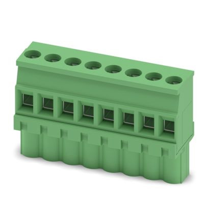 Leiterplattenstecker, Nennquerschnitt: 2,5 mm², Farbe: grün, Nennstrom: 12 A, Bemessungsspannung (III/2): 320 V, Kontaktoberfläche: Sn, Kontaktart: Buchse, Anzahl der Potenziale: 8, Anzahl der Reihen: 1, Polzahl: 8, Anzahl der Anschlüsse: 8, Artikelfamilie: MVSTBW 2,5/..-ST, Rastermaß: 5 mm, Anschlussart: Schraubanschluss mit Zughülse, Schraubenangriffsform: L Längsschlitz, Anschlussrichtung Leiter/Platine: -90 °, Rasthaken: - Rasthaken, Stecksystem: COMBICON MSTB 2,5, Verriegelung: ohne, Befestigungsart: ohne, Verpackungsart: verpackt im Karton