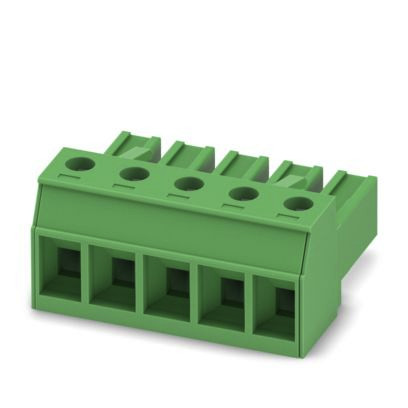 Leiterplattenstecker, Nennquerschnitt: 4 mm², Farbe: grün, Nennstrom: 20 A, Bemessungsspannung (III/2): 630 V, Kontaktoberfläche: Sn, Kontaktart: Buchse, Anzahl der Potenziale: 5, Anzahl der Reihen: 1, Polzahl: 5, Anzahl der Anschlüsse: 5, Artikelfamilie: PC 4/..-ST, Rastermaß: 7,62 mm, Anschlussart: Schraubanschluss mit Zughülse, Schraubenangriffsform: L Längsschlitz, Anschlussrichtung Leiter/Platine: 0 °, Rasthaken: - Rasthaken, Stecksystem: COMBICON PC 4, Verriegelung: ohne, Befestigungsart: ohne, Verpackungsart: verpackt im Karton