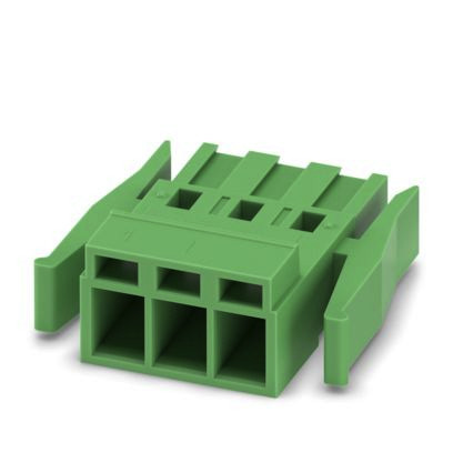 Leiterplattenstecker, Nennquerschnitt: 2,5 mm², Farbe: grün, Nennstrom: 12 A, Bemessungsspannung (III/2): 320 V, Kontaktart: Buchse, Anzahl der Potenziale: 3, Anzahl der Reihen: 1, Polzahl: 3, Anzahl der Anschlüsse: 3, Artikelfamilie: MSTBC 2,5/..-STZ-RF, Rastermaß: 5,08 mm, Anschlussart: Crimpanschluss, Anschlussrichtung Leiter/Platine: 0 °, Rasthaken: - ohne Rasthaken, Stecksystem: COMBICON MSTB 2,5, Verriegelung: Rastverriegelung, Befestigungsart: Rastflansch, Verpackungsart: verpackt im Karton, Zugehörige Crimp-Buchsenkontakte mit Angaben zu Strom [A] und Leiterquerschnittsbereich [mm²] : 10A/MSTBC-MT 0,5-1,0 (3190564); 10A/MSTBC-MT 0,5-1,0 BA (3190645); 12A/MSTBC-MT 1,5-2,5 (3190551); 12A/MSTBC-MT 1,5-2,5 BA (3190658). BA = Bandkontakte