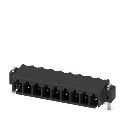 Leiterplatten-Grundleiste, Nennquerschnitt: 0,5 mm², Farbe: schwarz, Nennstrom: 6 A, Bemessungsspannung (III/2): 160 V, Kontaktoberfläche: Au, Kontaktart: Stift, Anzahl der Potenziale: 9, Anzahl der Reihen: 1, Polzahl: 9, Anzahl der Anschlüsse: 9, Artikelfamilie: MC 0,5/..-G-THR, Rastermaß: 2,54 mm, Montage: THR-Löten / Wellenlöten, Pin-Layout: Lineares Pinning, Pinlänge [P]: 2 mm, Anzahl der Lötpins pro Potenzial: 1, Stecksystem: COMBICON FMC 0,5, Ausrichtung Steckgesicht: Standard, Verriegelung: ohne, Befestigungsart: ohne, Verpackungsart: Gurt in 44 mm Breite