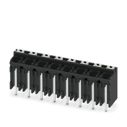 Leiterplattenklemme, Nennstrom: 17,5 A, Bemessungsspannung (III/2): 320 V, Nennquerschnitt: 1,5 mm², Anzahl der Potenziale: 8, Anzahl der Reihen: 1, Polzahl pro Reihe: 8, Artikelfamilie: SPT 1,5/..-V-THR, Rastermaß: 5,08 mm, Anschlussart: Push-in-Federanschluss, Montage: THR-Löten / Wellenlöten, Anschlussrichtung Leiter/Platine: 90 °, Farbe: schwarz, Pin-Layout: Lineares Pinning, Pinlänge [P]: 2,6 mm, Anzahl der Lötpins pro Potenzial: 2, Verpackungsart: verpackt im Karton