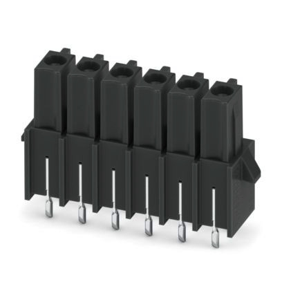 Leiterplatten-Grundleiste, Nennquerschnitt: 1,5 mm², Farbe: schwarz, Nennstrom: 8 A, Bemessungsspannung (III/2): 160 V, Kontaktoberfläche: Sn, Kontaktart: Buchse, Anzahl der Potenziale: 6, Anzahl der Reihen: 1, Polzahl: 6, Anzahl der Anschlüsse: 6, Artikelfamilie: IMCV 1,5/..-G-RN-THR, Rastermaß: 3,5 mm, Montage: THR-Löten / Wellenlöten, Pin-Layout: Lineares Pinning, Pinlänge [P]: 1,9 mm, Anzahl der Lötpins pro Potenzial: 2, Stecksystem: COMBICON MC 1,5, Ausrichtung Steckgesicht: Standard, Verriegelung: Rastverriegelung, Befestigungsart: Rastnase, Verpackungsart: verpackt im Karton