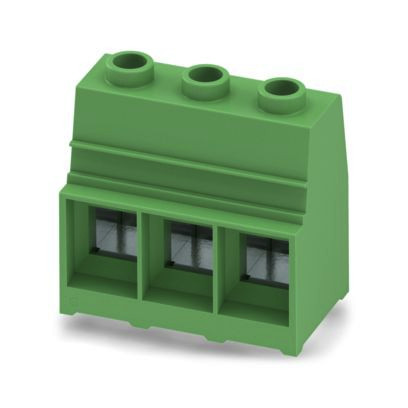 Leiterplattenklemme, Nennstrom: 192 A, Bemessungsspannung (III/2): 1000 V, Nennquerschnitt: 70 mm², Anzahl der Potenziale: 3, Anzahl der Reihen: 1, Polzahl pro Reihe: 3, Artikelfamilie: MKDSP 50, Rastermaß: 17,5 mm, Anschlussart: Schraubanschluss mit Zughülse, Schraubenangriffsform: T30 innensechsrund, Montage: Wellenlöten, Anschlussrichtung Leiter/Platine: 0 °, Farbe: grün, Pin-Layout: Lineares 2x2-Pinning, Pinlänge [P]: 4 mm, Anzahl der Lötpins pro Potenzial: 4, Verpackungsart: verpackt im Karton
