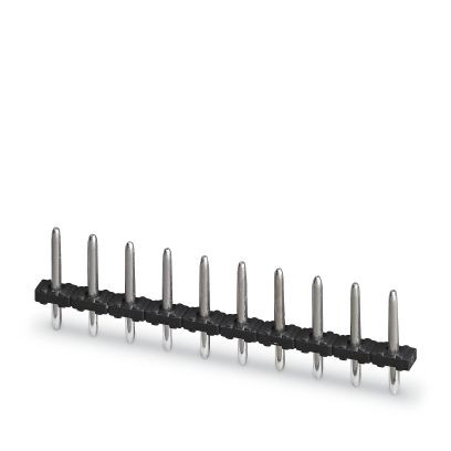 Stiftleiste, Nennquerschnitt: 1,5 mm², Farbe: schwarz, Nennstrom: 12 A (Abhängig von verwendetem Stecker), Bemessungsspannung (III/2): 320 V, Kontaktoberfläche: Sn, Kontaktart: Stift, Anzahl der Potenziale: 9, Anzahl der Reihen: 1, Polzahl: 9, Anzahl der Anschlüsse: 9, Artikelfamilie: PST 1,3/..-V, Rastermaß: 5 mm, Montage: THR-Löten / Wellenlöten, Pin-Layout: Lineares Pinning, Pinlänge [P]: 3,5 mm, Stecksystem: COMBICON PST 1,3, Verriegelung: ohne, Befestigungsart: ohne, Verpackungsart: verpackt im Karton, Der maximale Strom richtet sich nach dem verwendeten Stecker. Der niedrigere der beiden Stromwerte für Stecker und Stiftleiste ist maßgebend. Die Stiftleiste ist aus einem hochtemperaturfesten Kunststoff hergestellt und ist somit für den Reflowprozess geeignet.