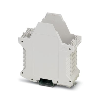 Tragschienengehäuse, Gehäuseunterteil mit Metallfußriegel, mit FE-Kontakt, hohe Bauform, mit Lüftungsschlitzen, Breite: 45,2 mm, Höhe: 99 mm, Tiefe: 107,3 mm, Farbe: lichtgrau (ähnlich RAL 7035), Querverbindung: Tragschienen-Busverbinder (optional), Polzahl Querverbinder: 5